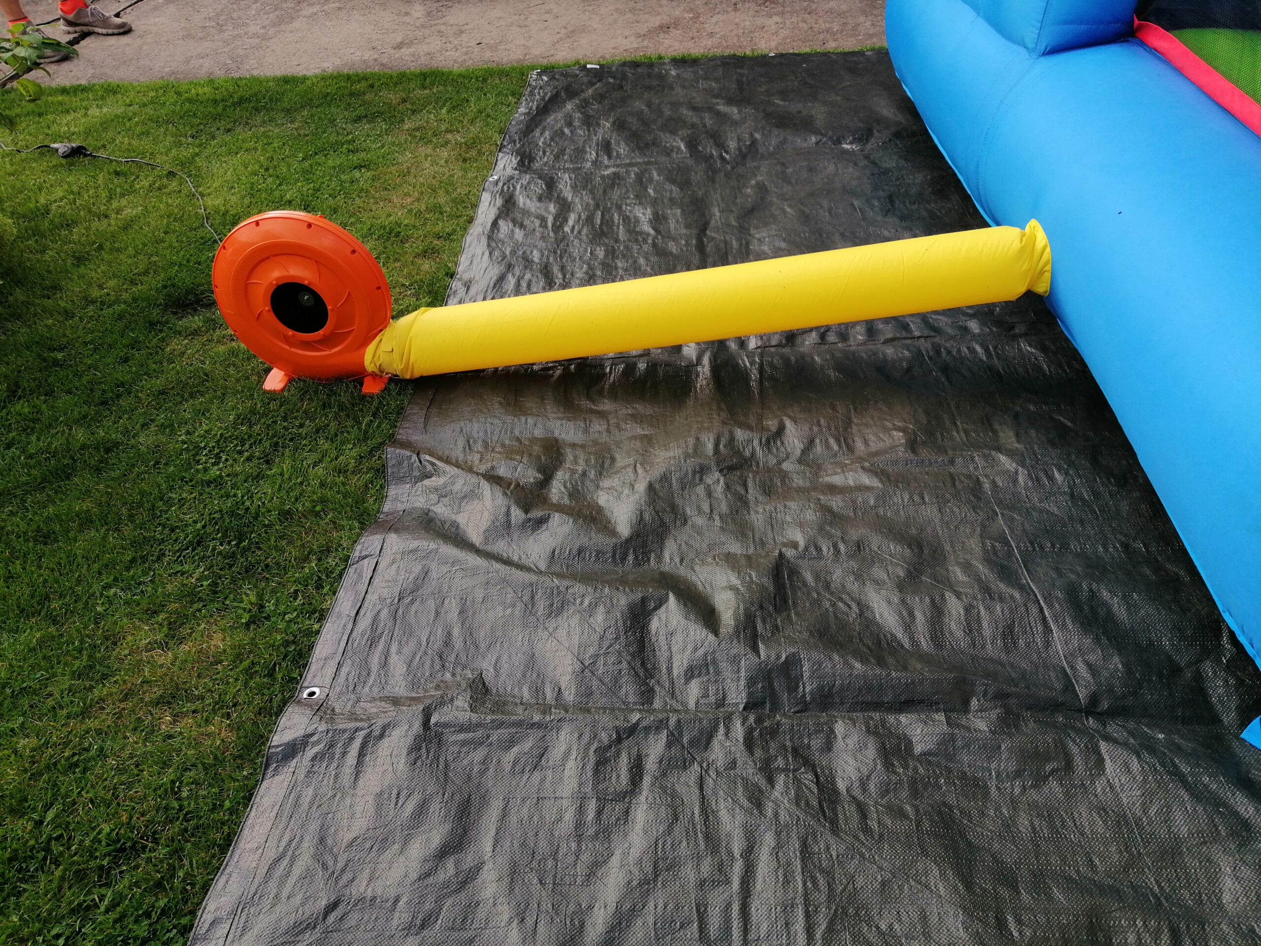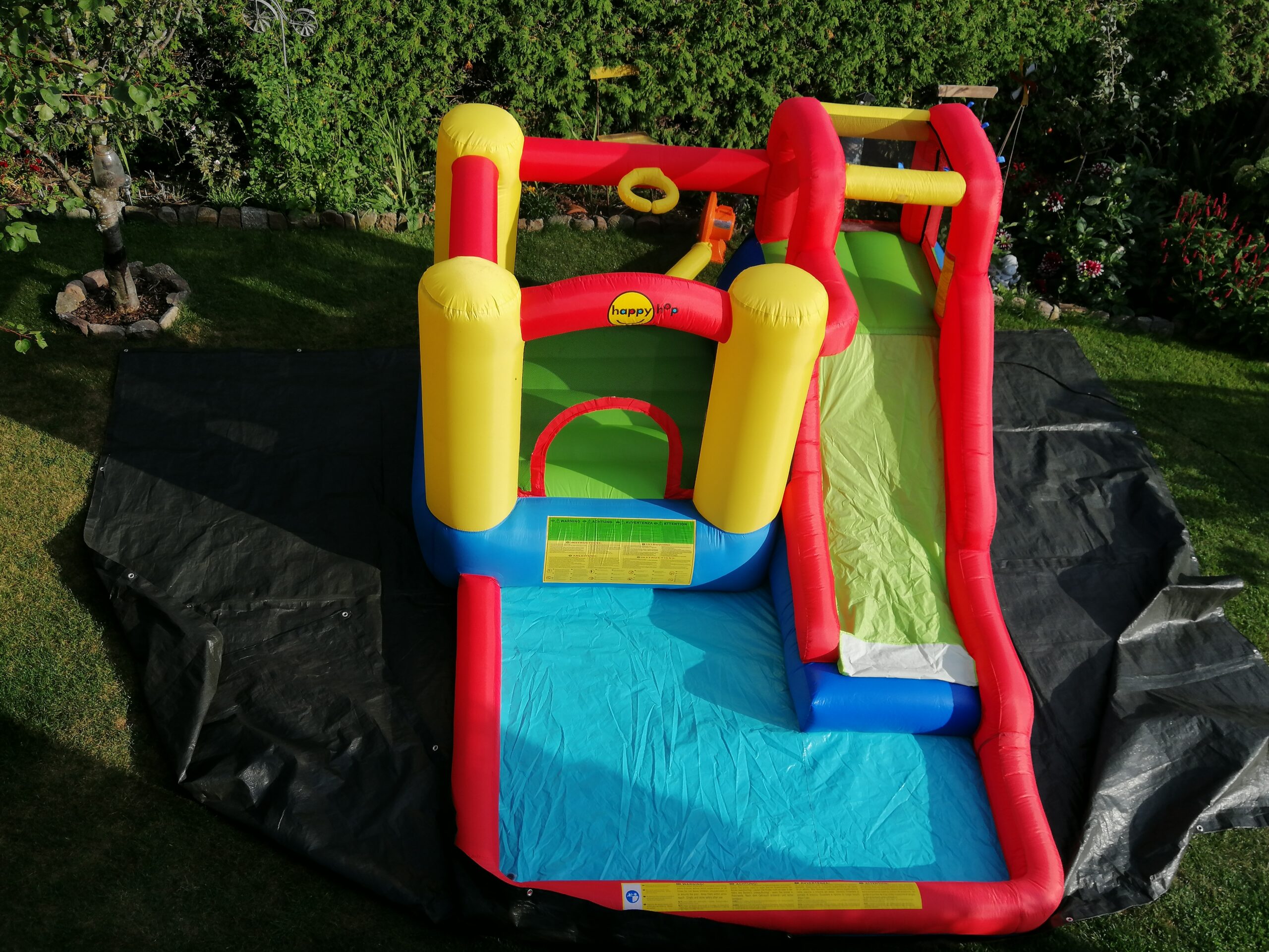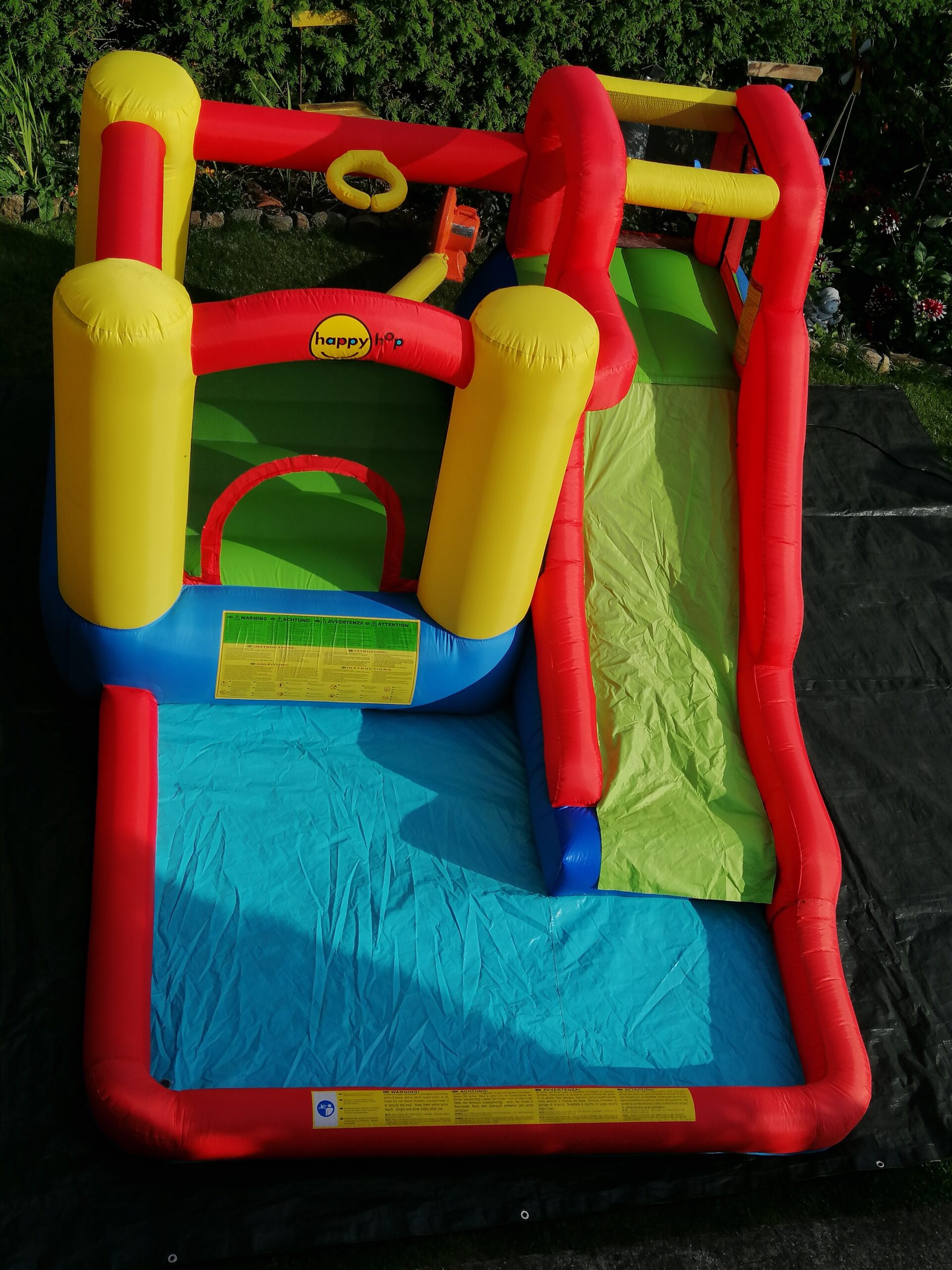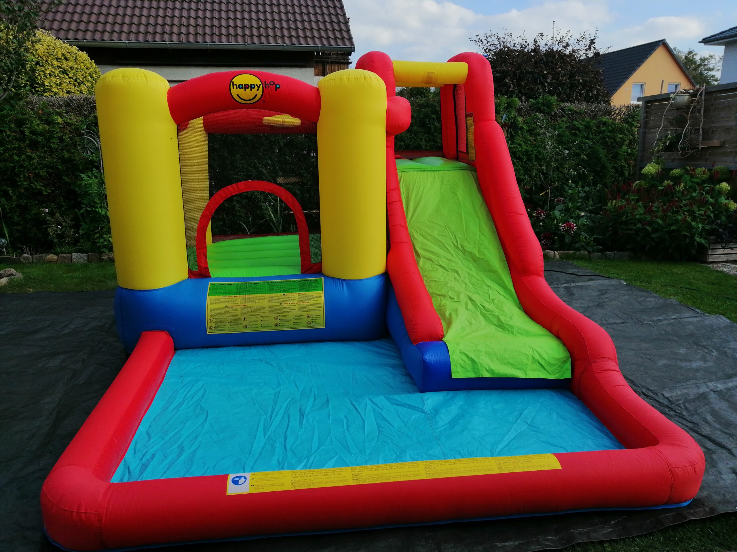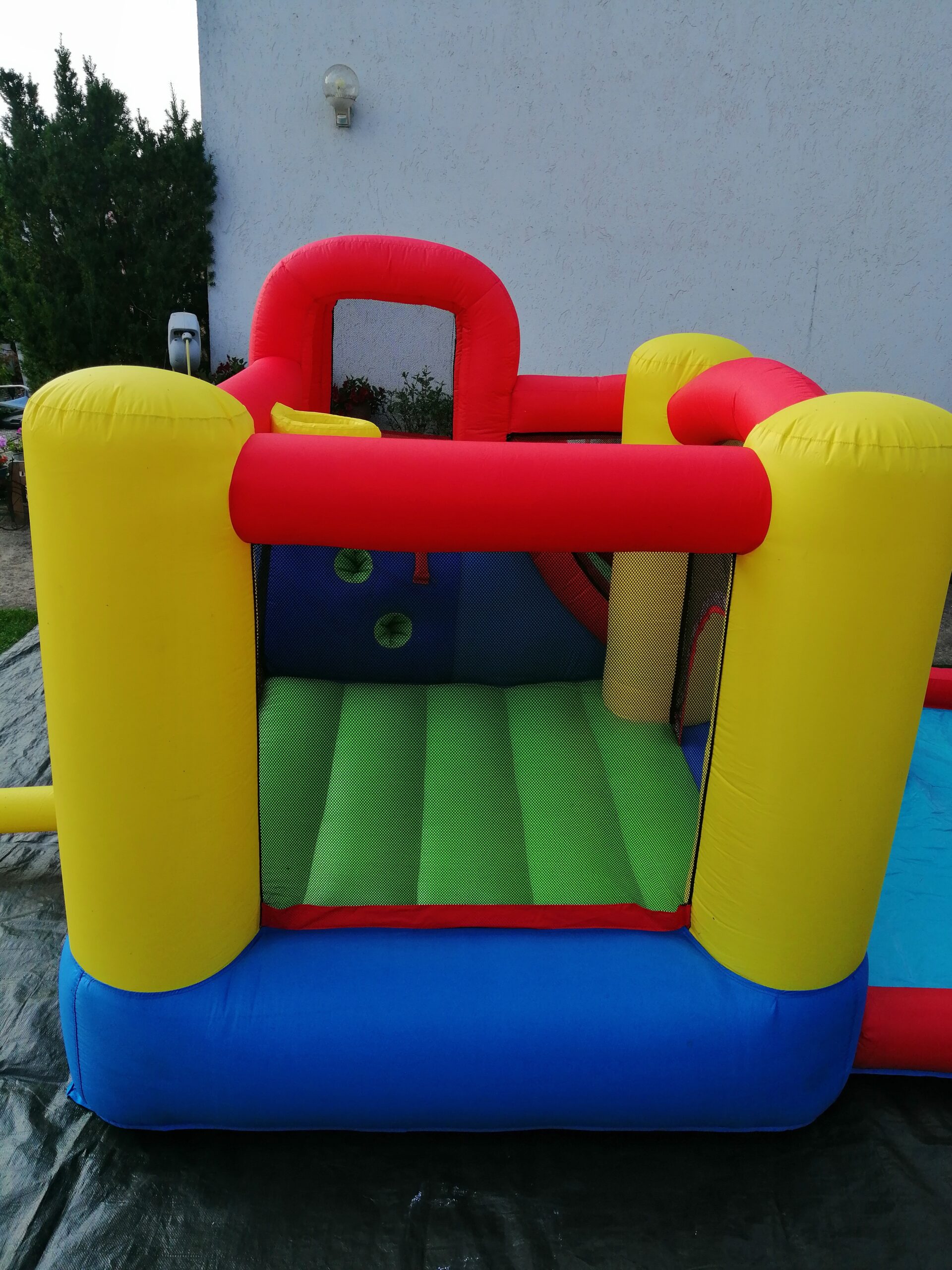 Die Hüpfburg Wasserrutsche kann auch ohne Wasser betrieben werden.